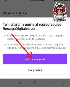 2- Una vez que te redirija a la app de Canva vuelve a apretar  ¨Unirme al Equipo¨