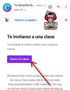 1- Ingresar al mensaje del correo y apretar ¨Unete a Clase¨